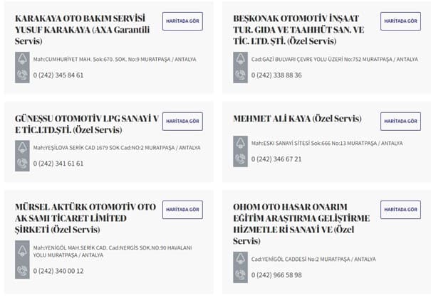 Sorgulama sonucu aşağıda paylaşıldığı gibi Axa Sigorta anlaşmalı kurumların adı, adresi ve iletişim numarası bilgilerine ulaşılabilir.
