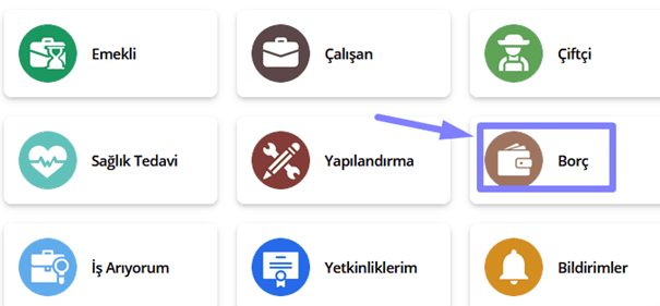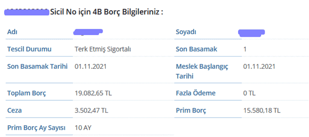 Yukarıdaki sekmelerden “ Borç ” yazana tıklayarak 4B prim borcunuza ilişkin detaylara ulaşabilirsiniz.