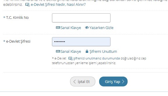 ADIM-4: E-Devlet giriş bilgilerinizle sisteme giriş yapınız.