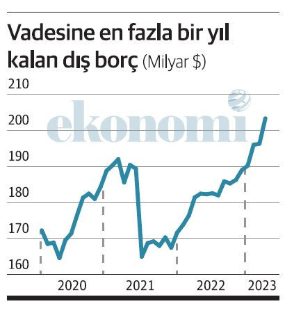 2021 sonunda 172 milyar dolar olan vadesi bir yıl içinde dolacak dış borç belirgin bir artışla işte son olarak bu yıl martta 203.3 milyar dolara ulaştı.