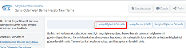 “ Şahıs Ödemeleri Banka Hesabı Tanımlama ” kısmından banka hesabı seçilerek ödemeler alınabilir.