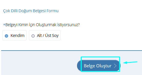 Bu aşamadan sonra belgeyi kim için düzenlemek istediğiniz sorulur. İlgili seçeneği tercih ederek “ Belge Oluştur ” yazan alana tıklamalısınız.