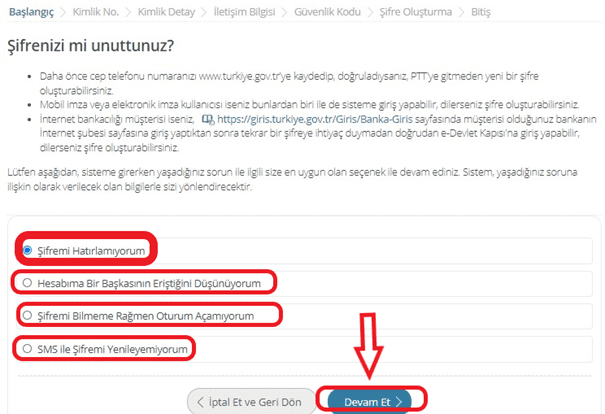 eDevlet şifrenizi unuttuğunuz takdirde yapmanız gereken şifrenizi tekrar belirlemektir.