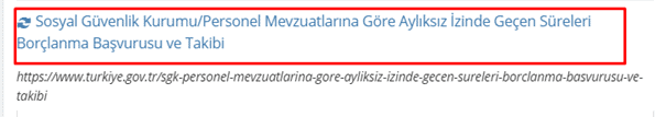 Yukarıda gösterilen ekrandan aylıksız izinde geçen süreler için borçlanma başvurusu yapılır.