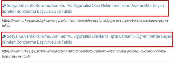 Yukarıda gösterilen ekrandan fahri asistanlıkta, tıpta uzmanlıkta geçen süreler için borçlanma başvurusu yapılır.