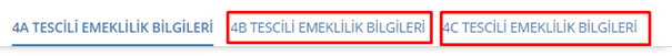 Üst kısımdan 4b ve 4c seçilerek de eksik prim günleri görülebilir. BAĞ-KUR emeklisi olanlar 4B, Emekli Sandığı’na bağlı olanlar, 4c kısmından sorgulama yapabilir.