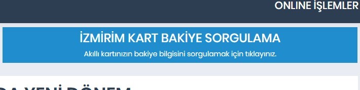 ADIM-2 : Sağ üstte yer alan “ İzmirim Kart Bakiye Sorgulama ” adresine tıklayınız.