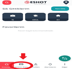 Ekranın en alt kısmında “ İzmirim Kart ” sekmesi yer alır. Bu ekrandan var olan kartınız için işlemler yapabilir ya da yeni kart ekleyebilirsiniz.