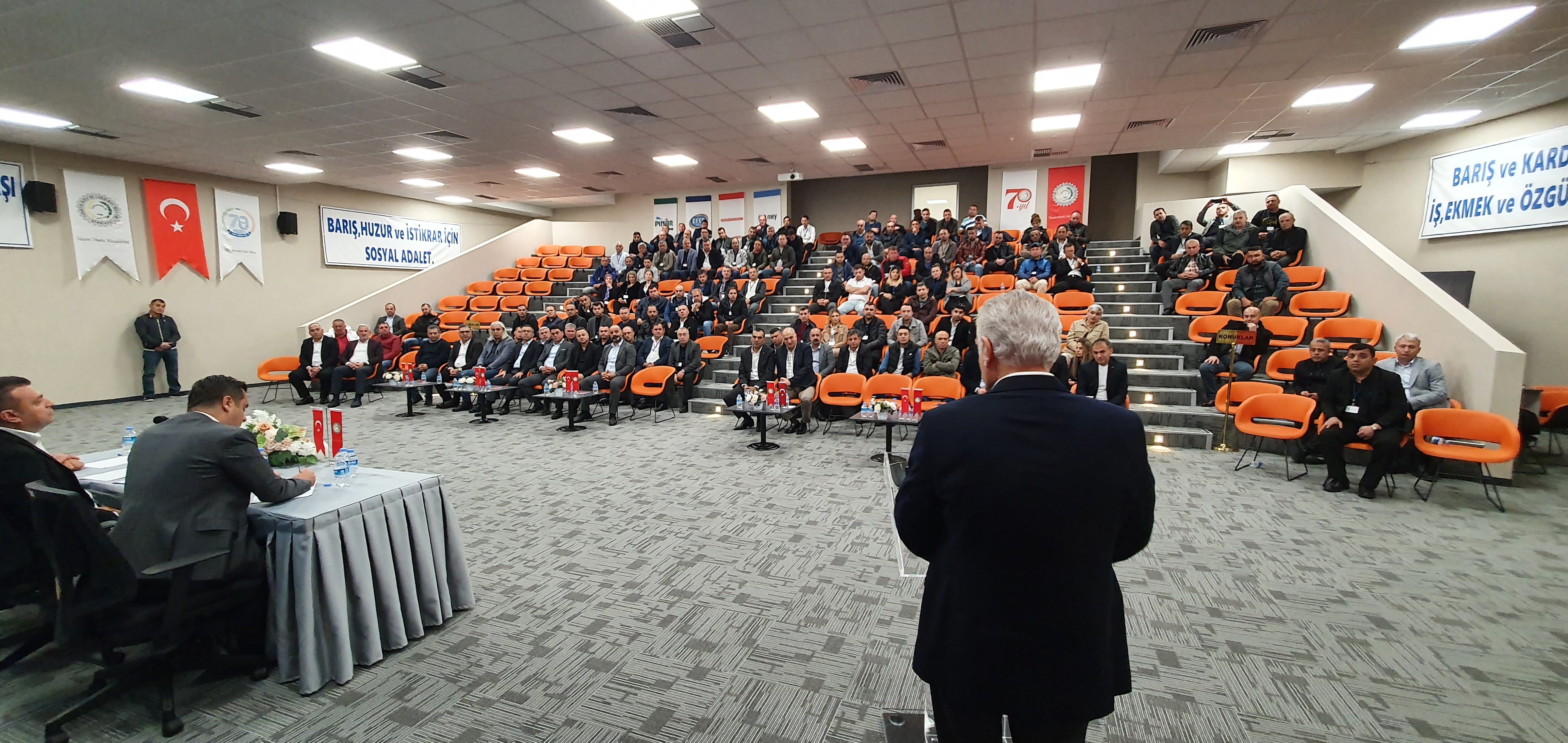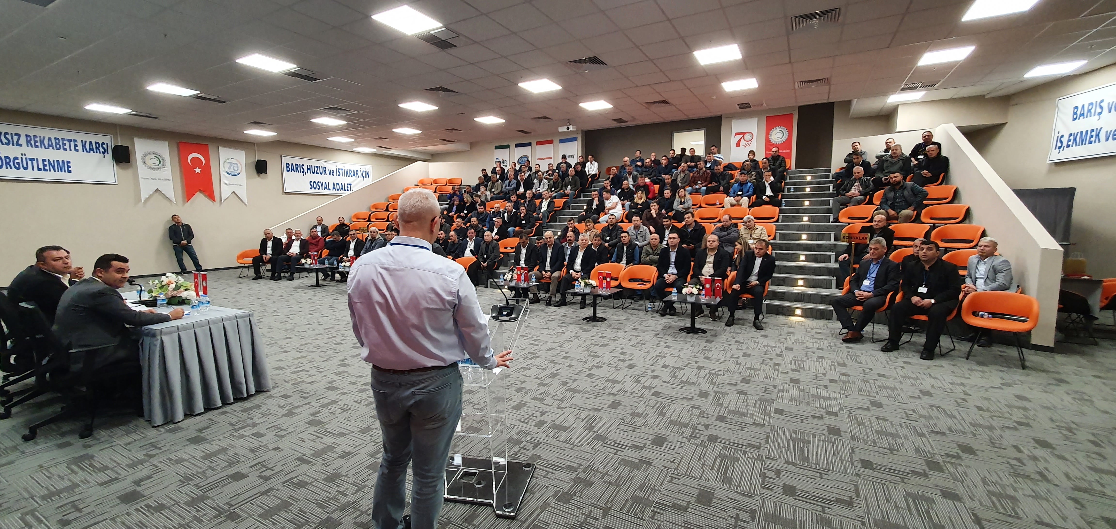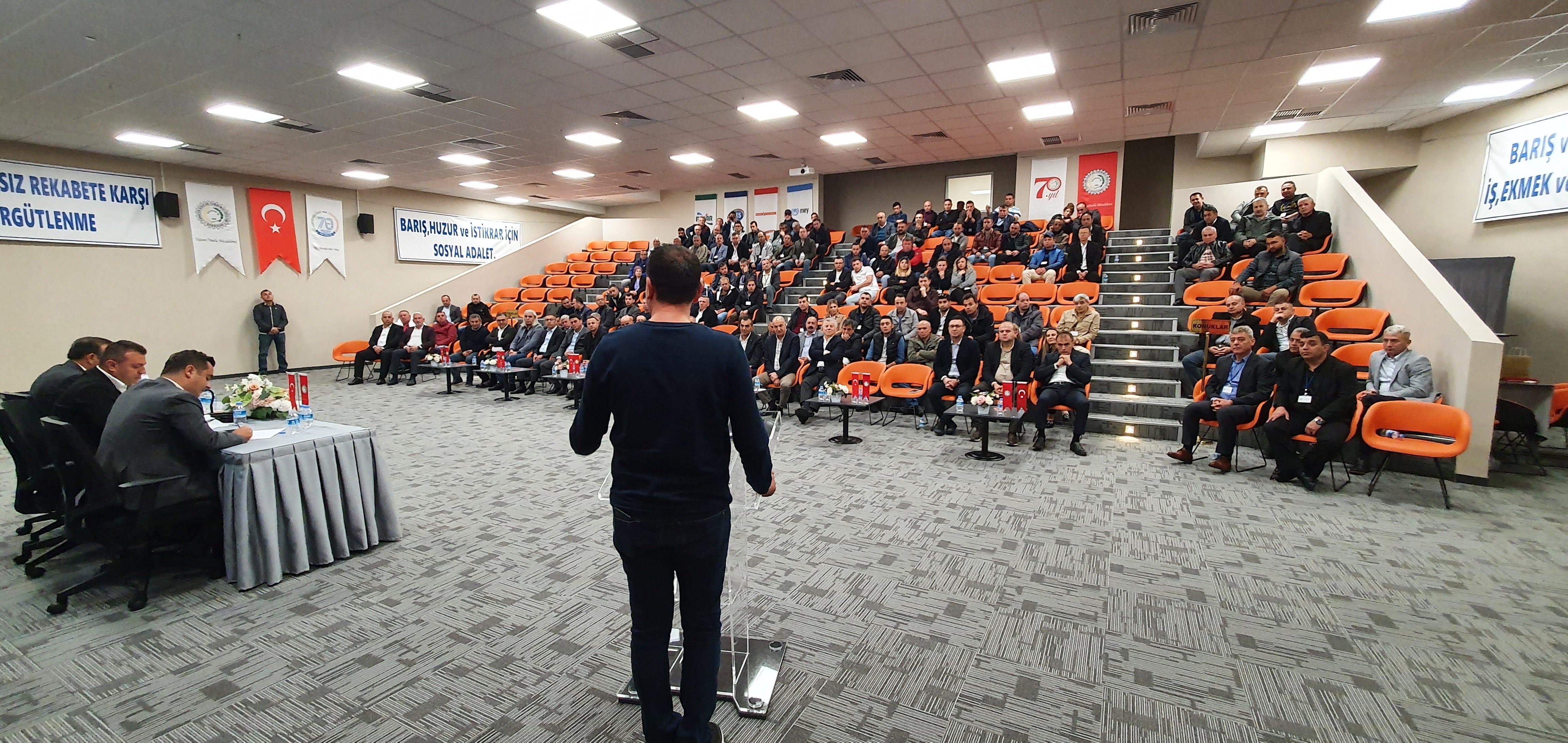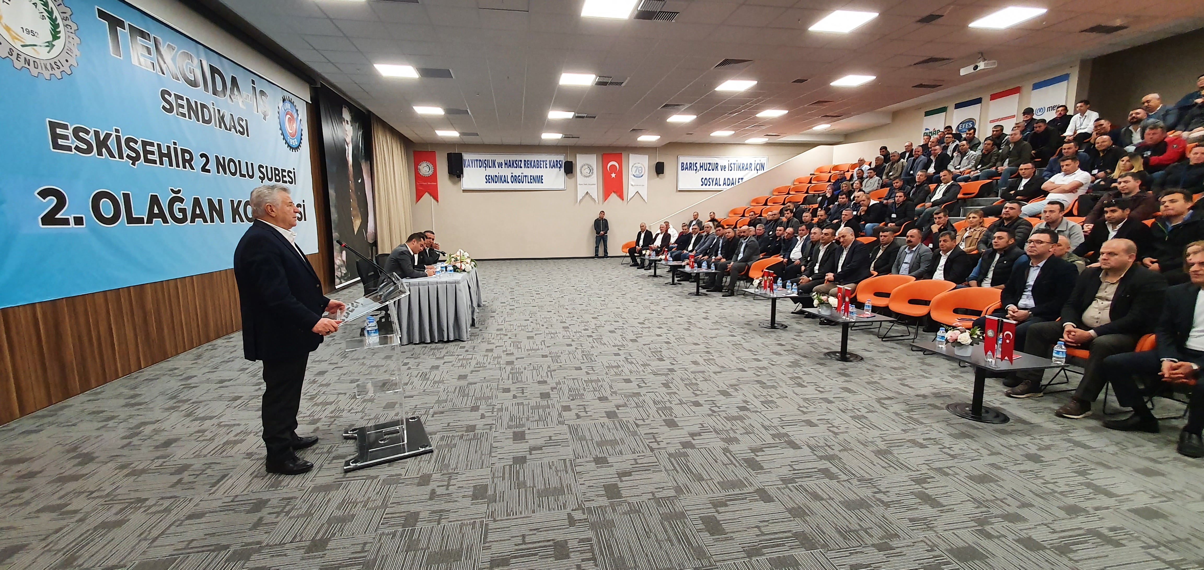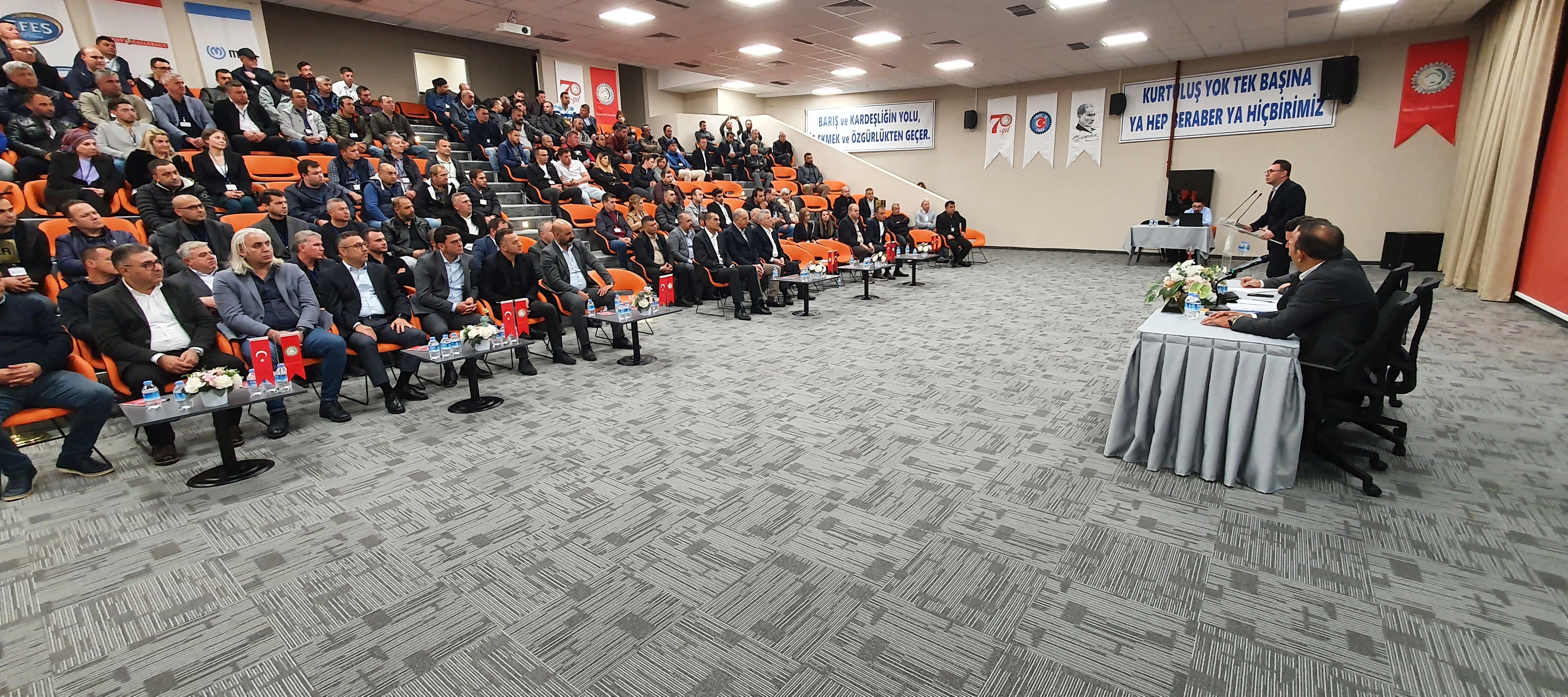 Delegelerin konuşmasının ardından bir konuşma yapan Genel Başkanımız Mustafa Türkel, ülkemizin içinde bulunduğu ekonomik ve siyasi durumu, bunun çalışanlara yansımalarını, asgari ücret artışını ve bunun toplu sözleşmelere etkileri de dahil çalışma hayatının gündemindeki konuları değerlendirdi.