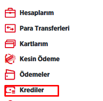 Gelen ekrandaki menüden “ Krediler ” seçeneği tercih edilmelidir.