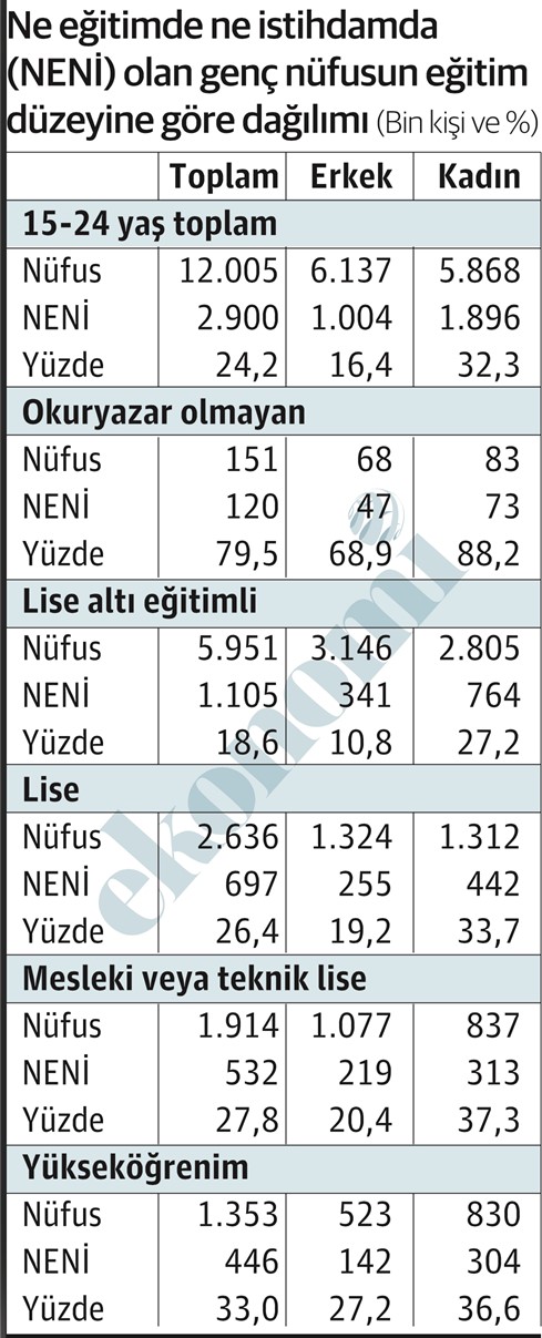 15-24 yaş grubundaki genç nüfusta ne eğitimde ne istihdamda olanların geçen yılki oranı yüzde 24.2 ama bu oranın önceki iki yıla göre daha düşük olduğu da bir gerçek.