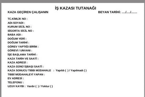 İş kazası tutanağı kazaya ilişkin tüm detayları içermelidir.