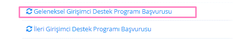 E-Devlet üzerinden “ Geleneksel Girişimci Destek Programı Başvurusu ” seçeneğine tıklayarak destek başvurusu de yapılabilir.