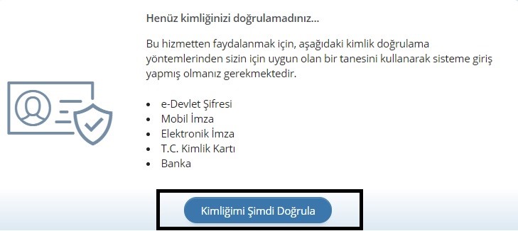 Türkiye Bankalar Birliği hizmetleri arasında yer alan sayfaya linki kullanılarak yapılan giriş ardından, aşağıda gösterildiği şekilde “Kimliğimi Şimdi Doğrula” butonuna basılarak işlemler başlatılır.