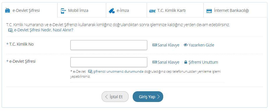 Adım – 1 : İlk önce e-devlet sistemine TC Kimlik numaranız ve e-devlet şifreniz ile giriş yapmanız gerekiyor.