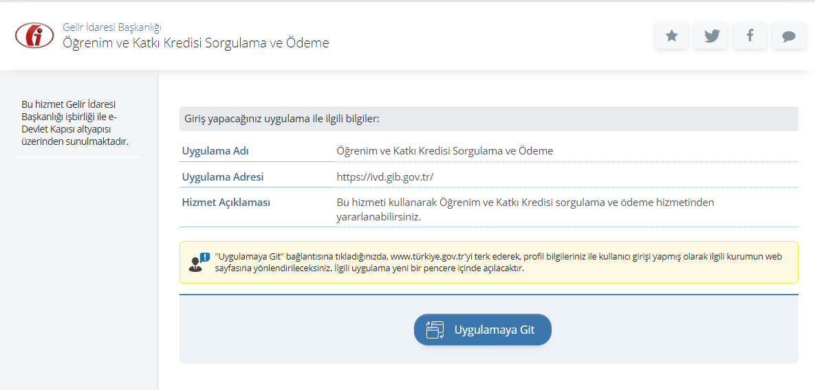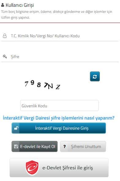 Aynı şekilde Gelir İdaresi Başkanlığı internet vergi dairesi aracılığıyla şubeye gitmeden de ödeme yapılabilir. Kurum sitesini ziyaret ettikten sonra bireylerden istenen kişisel bilgiler verilir ve kullanıcı girişi ve borç sorgulama işlemleri yapılır.