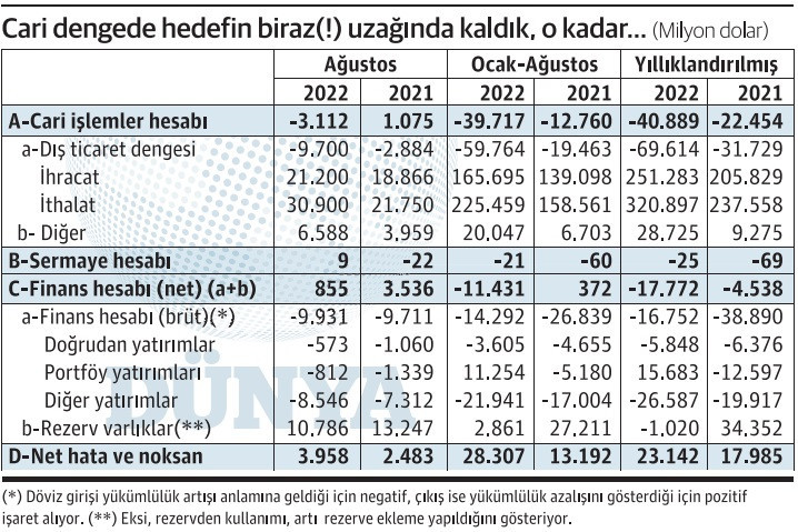 Yani bu yıl ağustostaki açık yüksek. Bu açığın dış ticaretten kaynaklandığı da ortada. Ticaret açığı yaklaşık 3 milyardan 10 milyara çıktı çünkü. Başta turizm olmak üzere diğer kalemlerde geçen yıl 4 milyar olan net gelir bu yıl 6.6 milyara yükseldi ama yetmedi.