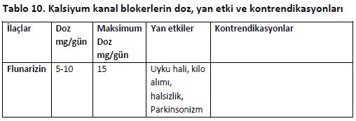 • Kalsiyum kanal blokerleri, ailesel hemiplejik migren, baziler tip migren, hipertansiyon, Raynaudfenomeni, anjina ve astımda kullanılabilirler.