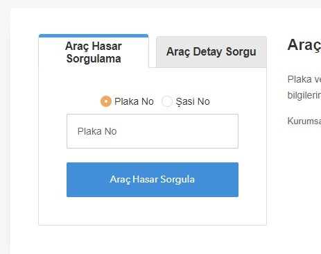 ADIM-4: Araç plakanızı girerek ‘’ Hasar Sorgula ’’ butonuna tıklayınız.