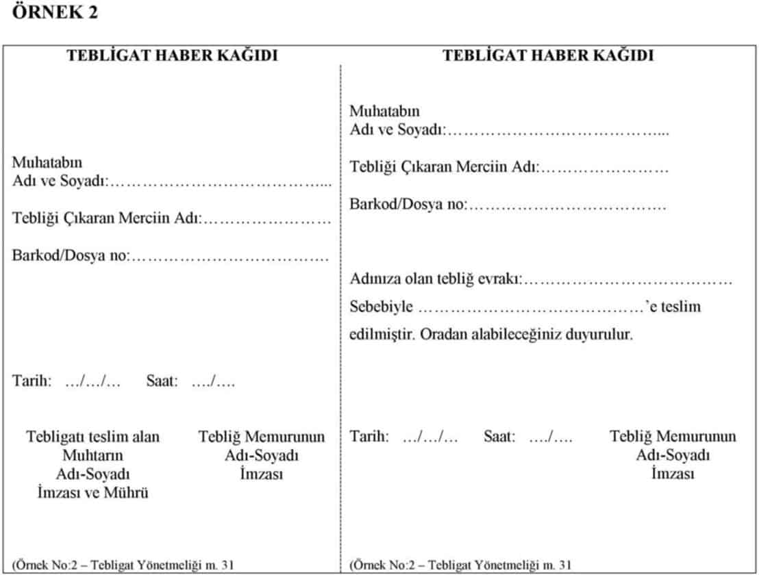 Adreste olmadığınız durumlarda kapınıza ihbar kâğıdı bırakılır. İhbar kâğıdında gönderinin nereye teslim edildiği belirtilir. Muhtara teslimat yapılamadığı durumlarda PTT şubesine bizzat giderek tebligatı teslim alabilirsiniz.
