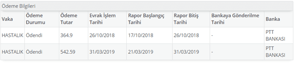 Ödeme bilgileriniz yukarıdaki şekilde görünür. Bu ekrandan ödenme durumu, ödenen tutar, rapor başlangıç ve bitiş tarihi gibi bilgilere erişebilirsiniz.
