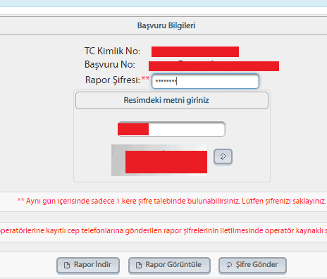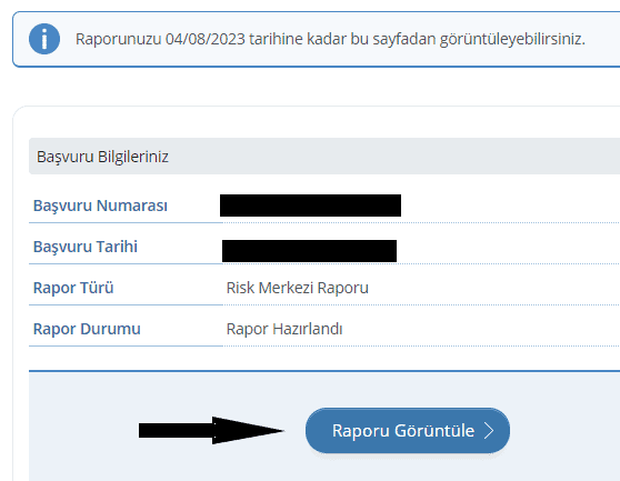 Yeni açılan ekranda raporu hangi tarihe kadar görüntüleyebileceğiniz gösterilir. “ Raporu Görüntüle ” kısmına tıkladığınızda ise görüntüleme için sizden şifre istenir.