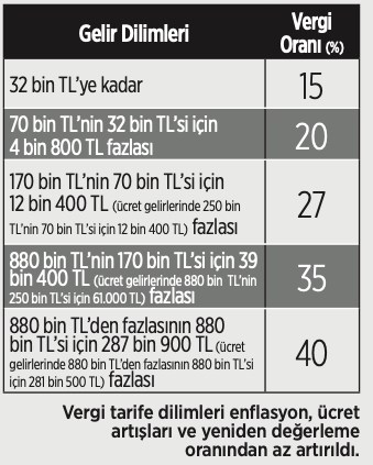 VERGİ DİLİMLERİ AZ ARTIRILIYOR