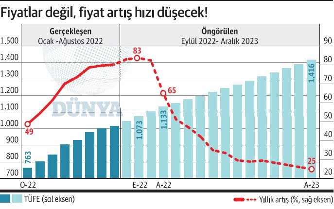 Her şey planlandığı, orta vadeli programda öngörüldüğü gibi giderse 2023 sonunda yıllık enflasyon hızı yüzde 24.90’a inecek.