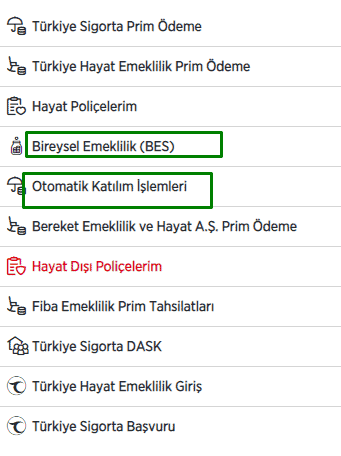 Sisteme kimlik numarası ya da müşteri numarası ile girebilirsiniz. Bunun yanı sıra internet şubesi şifrenizi girmeniz de gerekir. Sisteme giriş yaptıktan sonra sağ alt kısımda yer alan menüden “ Bireysel Emeklilik(BES)” seçeneğine tıklamak gerekir. Otomatik katılım seçeneğinden de gerekli işlemler yapılabilir.